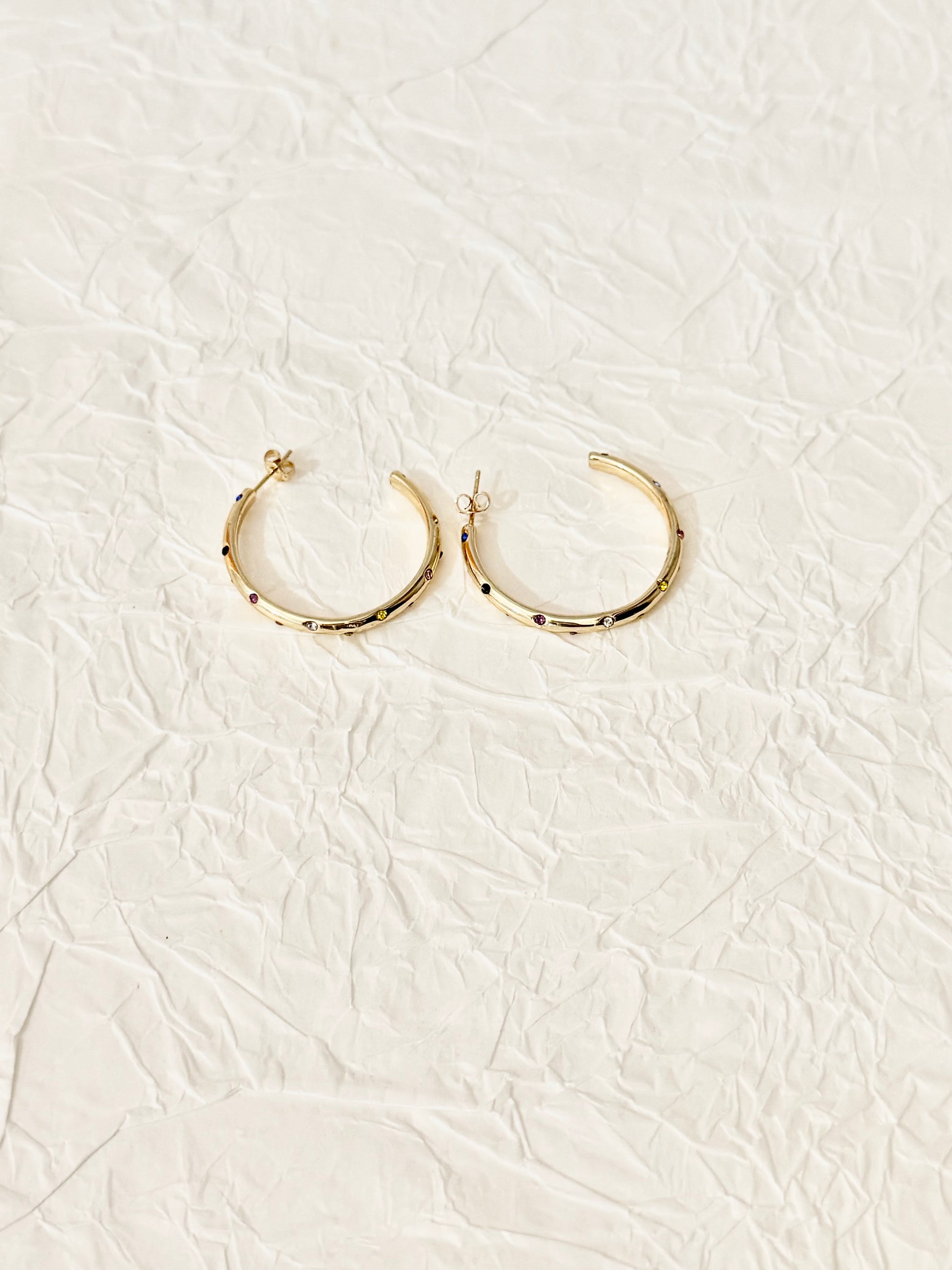 The Antena Earring showcases expertly crafted hoop design enhanced by brilliant cubic zirconia stones in striking hues. Each piece demonstrates refined styling with precision-cut stones that deliver exceptional sparkle and luminosity. Ideal for those who appreciate quality craftsmanship and seek jewellery that combines contemporary aesthetics with timeless elegance.