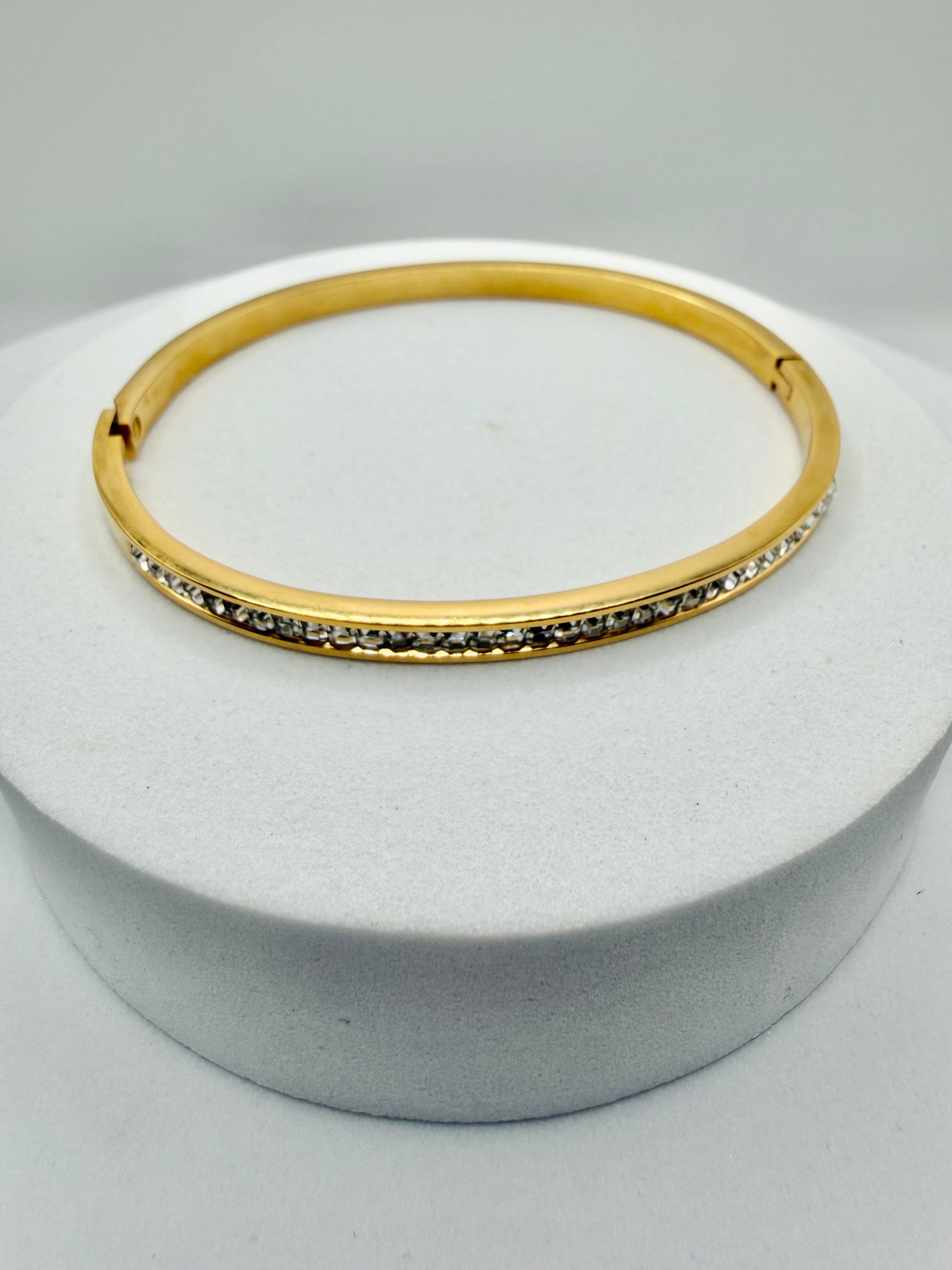 Elevate your everyday style with the Donna Bangle, a sophisticated accessory featuring brilliant cubic zirconia stones. This expertly crafted piece delivers timeless elegance and refined sparkle, making it the perfect finishing touch for any occasion. Whether worn alone or layered with complementary pieces, the Donna Bangle brings polished glamour to your jewellery collection.